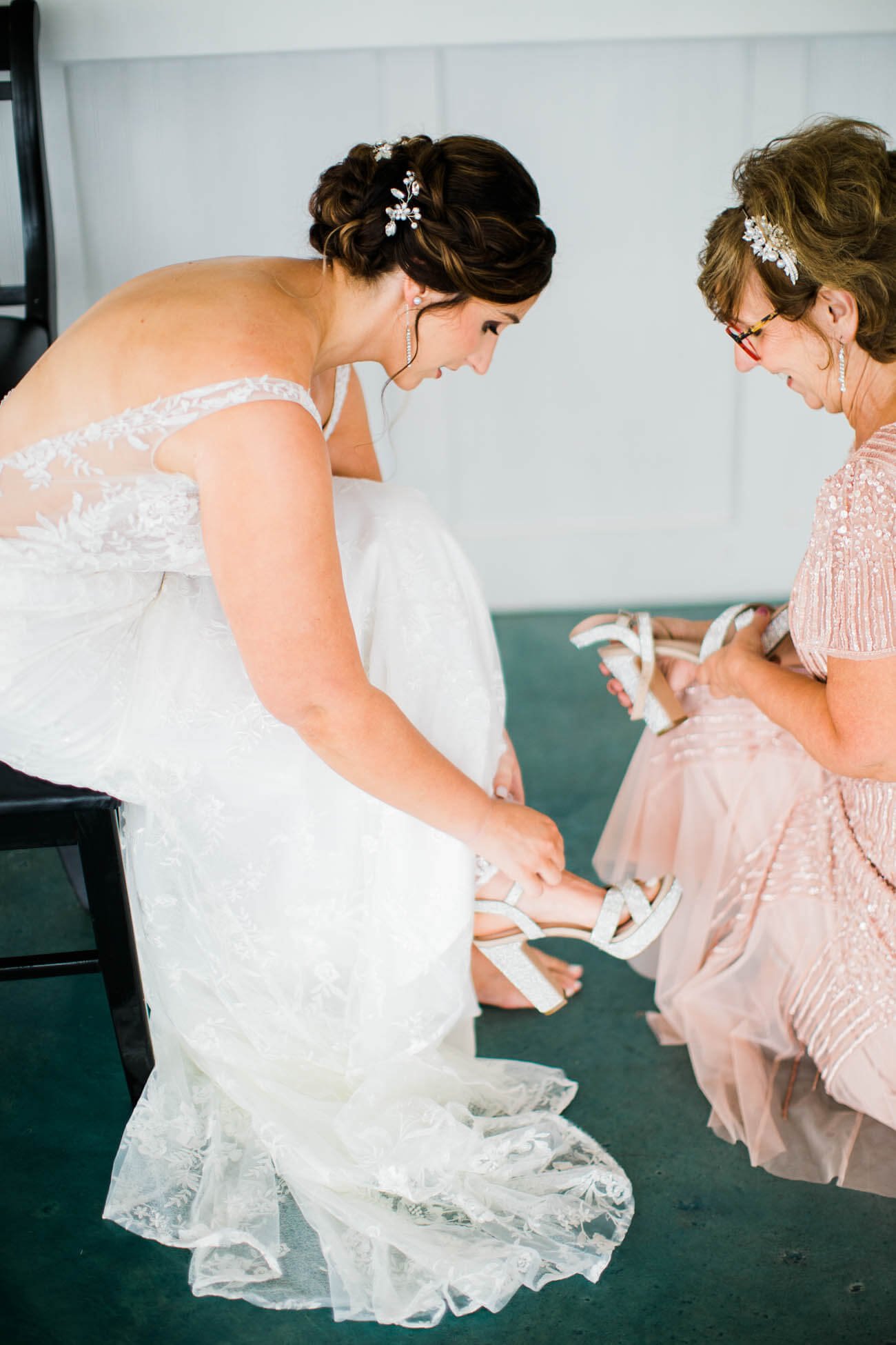 Robby + Kim tied the knot at the Ocean’s Edge oceanfront wedding venue in North Topsail Beach. Their venue had the perfect last minute indoor options. Although their ceremony didn’t take place outside as they planned they were able to enjoy the beach views and take photos outside. We’re so grateful the weather held out long enough for us to enjoy portraits outside. Check out some highlights from their special day!